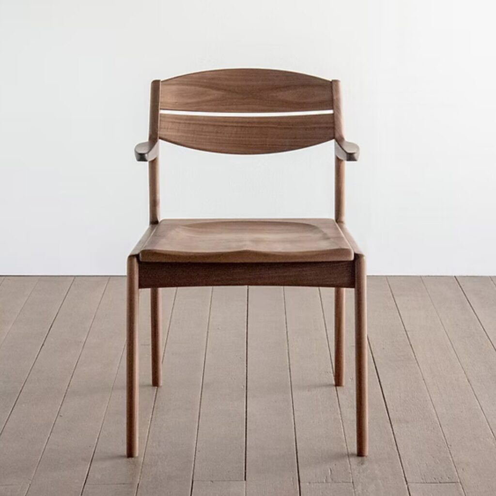 すべてに丸みが取られ柔らかな手触り、曲木の背板と座面のくり抜きが心地よく身体を受け止めてくれます。アームをテーブル天板に掛ければ、ルンバなどでのお掃除も楽々です。