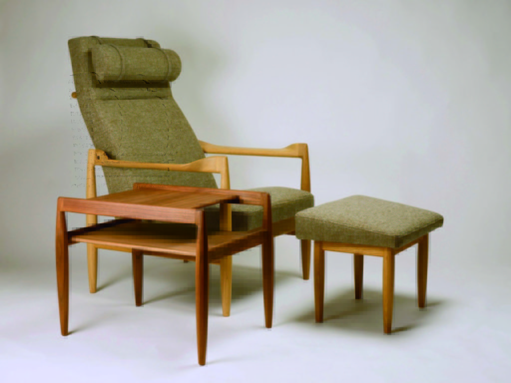 ピロークッションは高さを自在に調整可能です。捻ったように削り出したアームが特徴的。